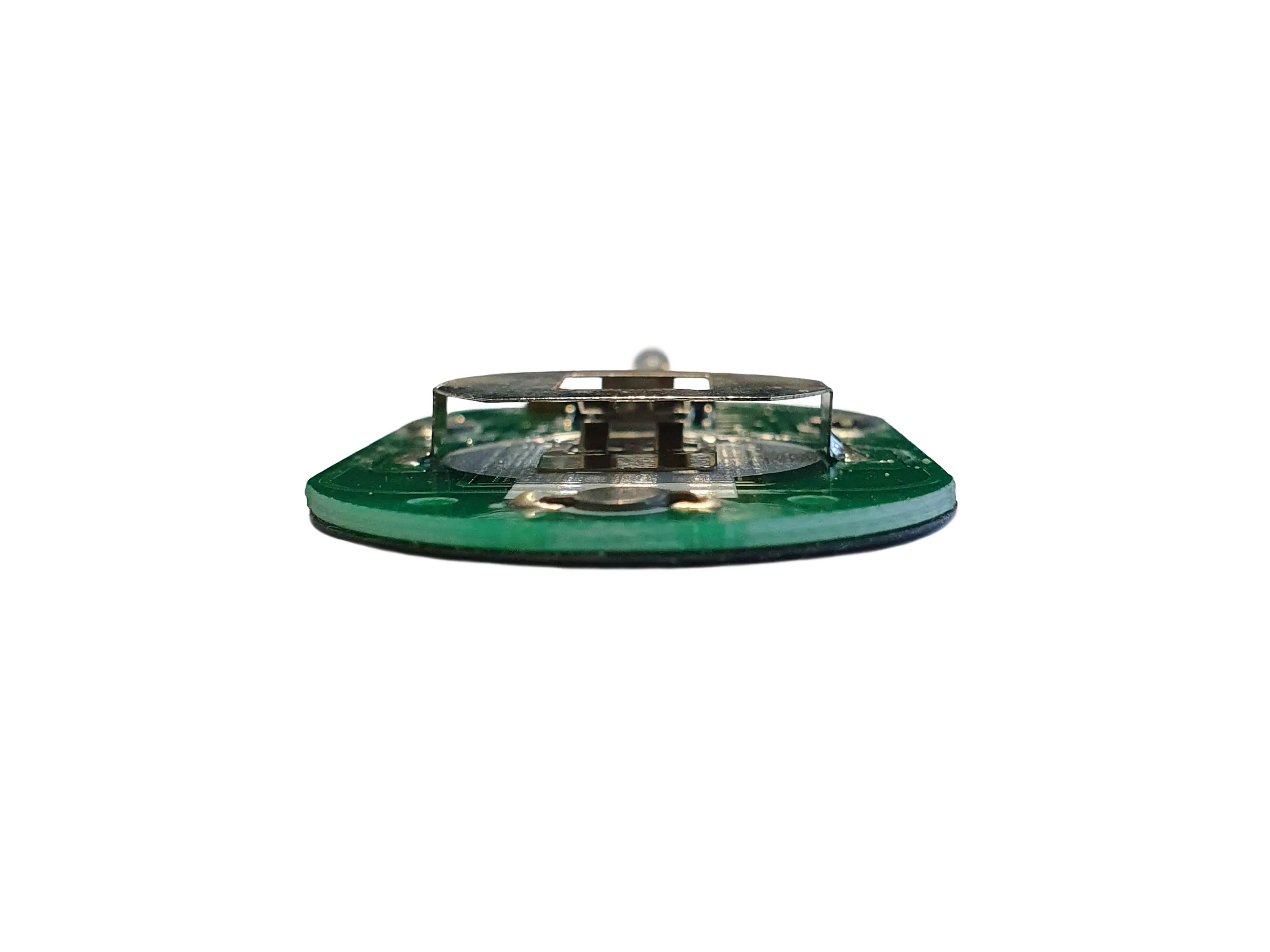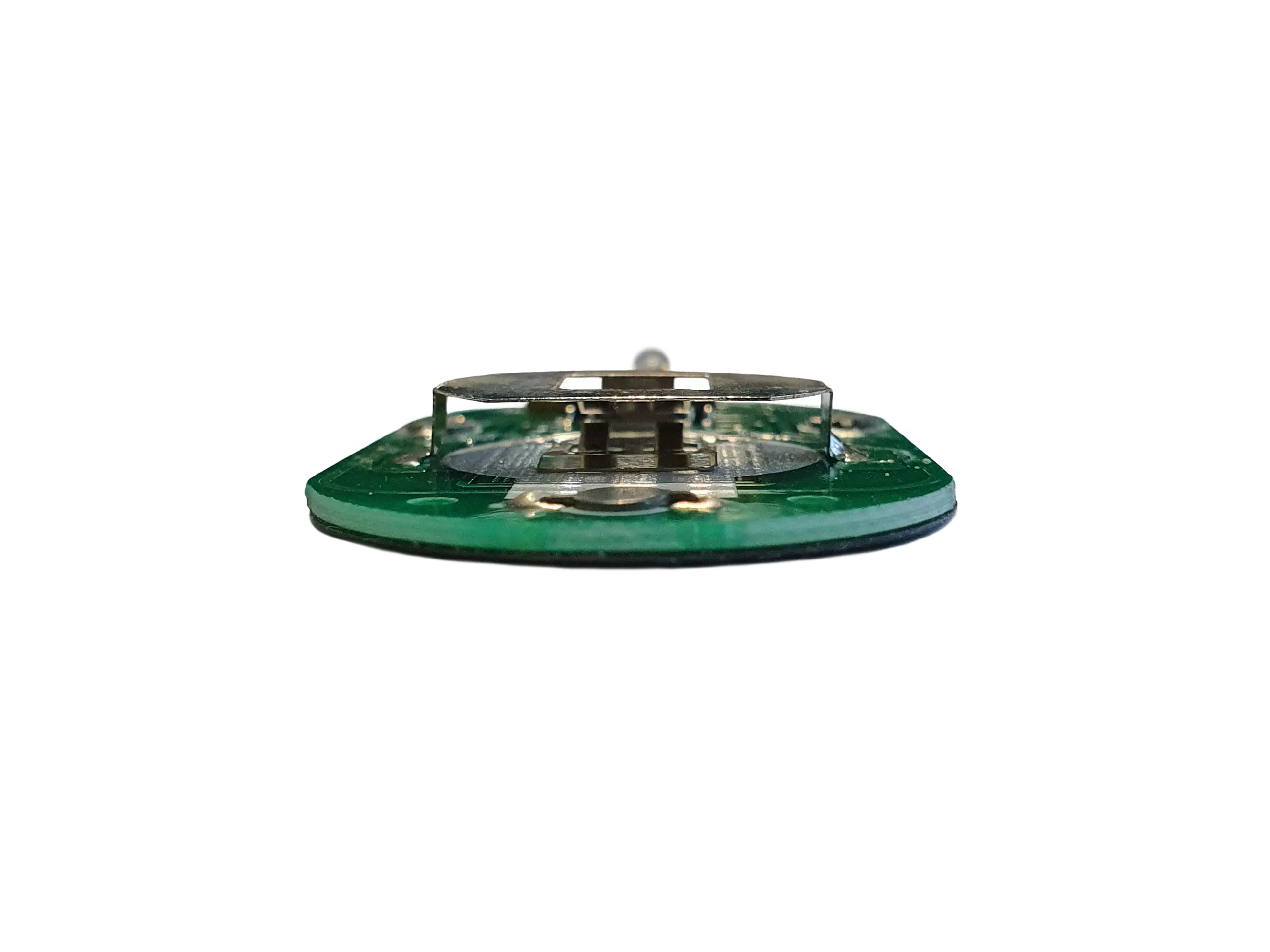 Kretskortet hålls på plats med hjälp av magneter. Knappsatsen sitter klistrad på kretskortet.