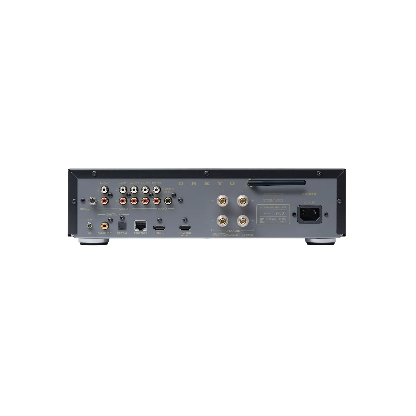 "Kraftfull integrerad stereoförstärkare med 250W effekt, streamingstöd, HDMI och rumskorrigering"