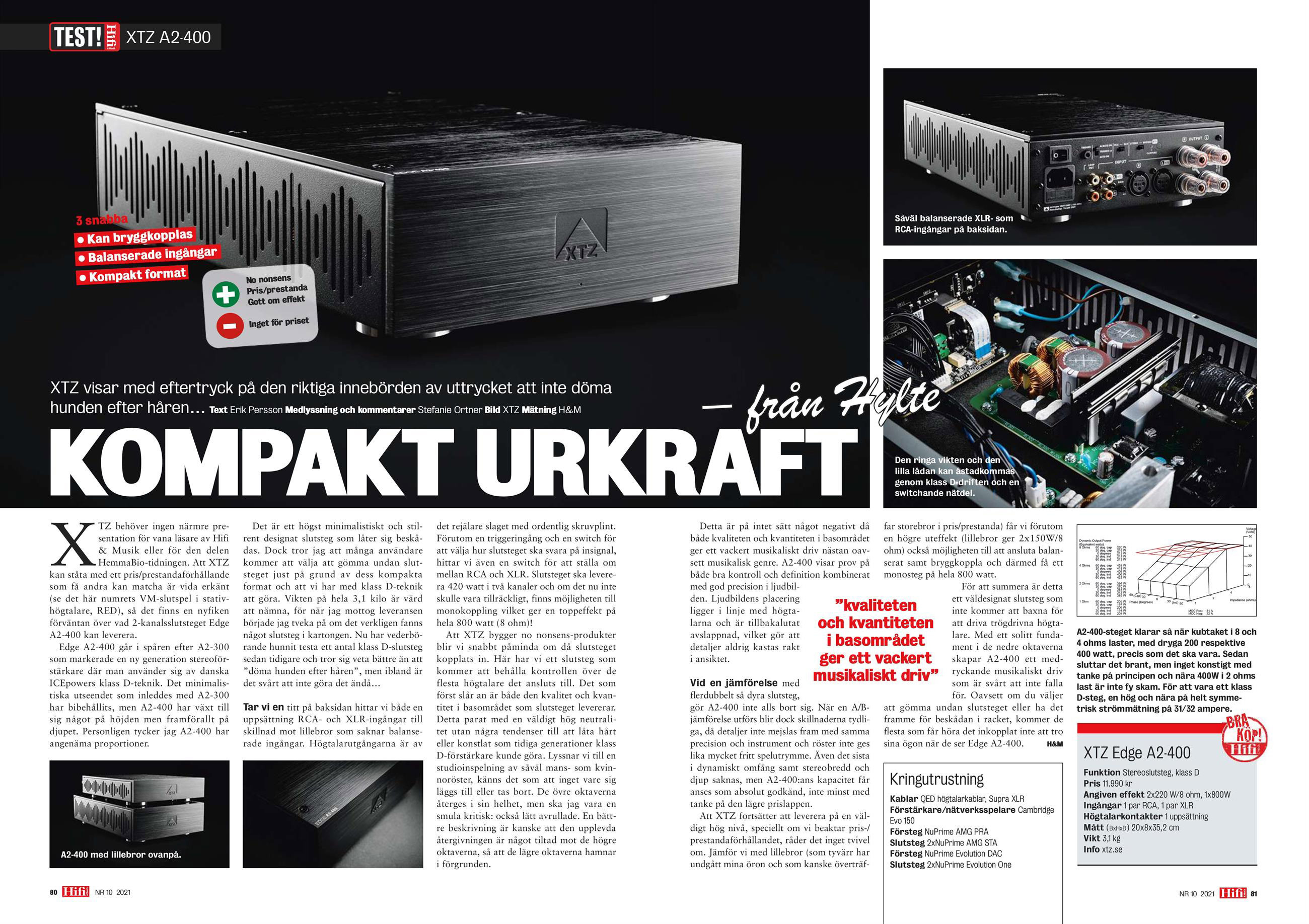"Vid en jämförelse med flerdubbelt så dyra slutsteg, gör A2-400 inte alls bort sig."